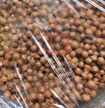 その上にセラミックボールを巻いて、乾燥防止でラップして芽がでるのを待ちます。