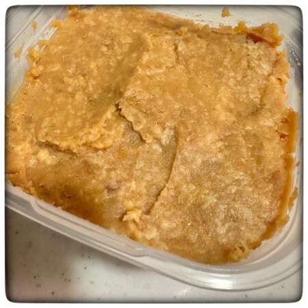 1番上らへんや、混ぜが甘いとところどころ色合いが違ったり、まだ白い麹が残ってたりしますが、冷蔵庫でも発酵は進むので特に気にしてません。