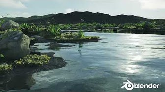 GeometryNodeモデファイアを使って背景制作を練習してみました。 遠景はblenderGISというaddonを使用し、中景はHeightmapから作成しています。 地形の形状、草や石の数などはパラメータで簡単に変