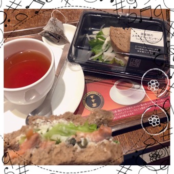 上島珈琲のスモークサーモンサンドとダージリンティー。