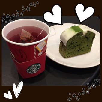 ユースベリー with 抹茶ケーキ in スタバ横浜 / 2017-11-22 ホワイトティーのユースベリーと抹茶ケーキ。 ユースベリーは、アサイー、パイナップル、マンゴー、ローズヒップ、アップルがミックスされていて、甘酸っぱく飲みやすいよ。 スタバの抹茶ケーキは良く食べるけど、やっぱり好き。このホワイトチョコの分が苦味のある抹茶と合って美味しいんだよね。