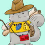 プロフィール画像のリスははじめての1人海外旅行に行った際のエッセイ「なんとかなる?!英語ができない初のひとり旅 in カナダ(kindle版)」の表紙を飾った灰色リス君「タネ坊」です。